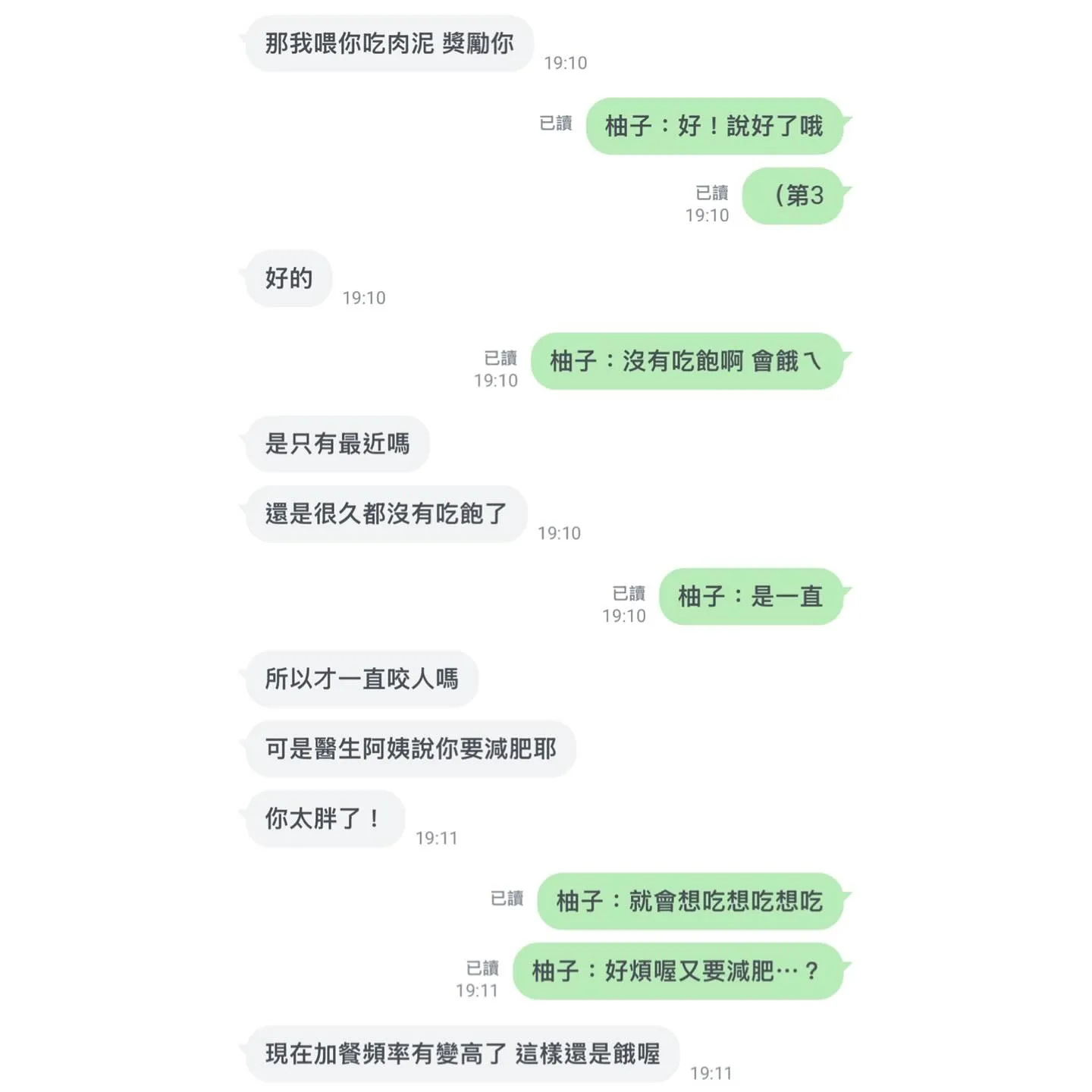 柚子:「我都沒有吃飽!會餓欸!好煩喔一直要減肥⋯」