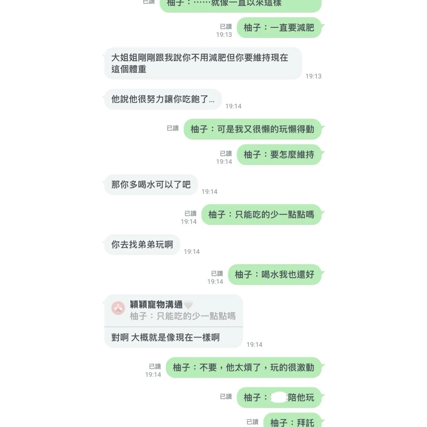 跟柚子的聊天內容