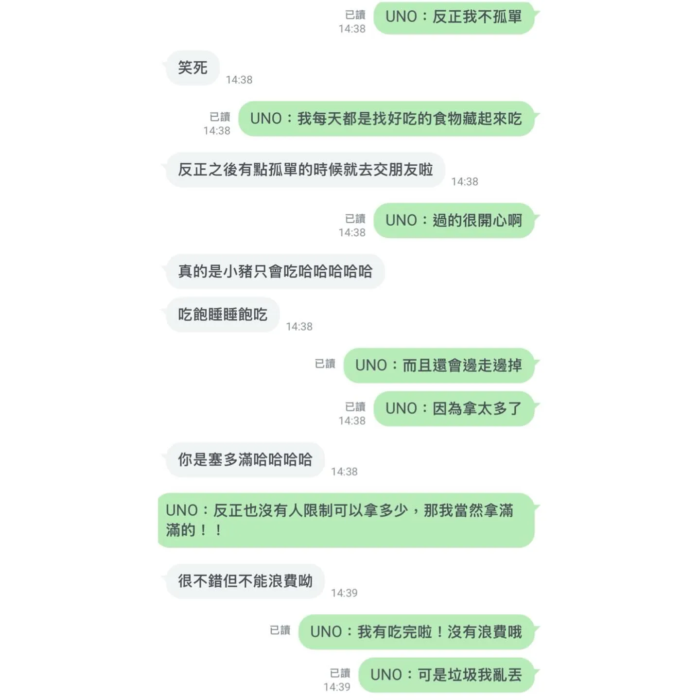 UNO:「反正我不孤單,我每天都找好吃的食物藏起來吃」